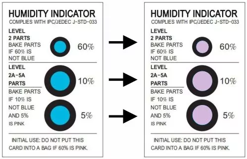 Кроме того, индикаторы активно используются в лабораториях, на производственных участках и в сушильных шкафах для постоянного мониторинга влажности внутри рабочих зон. Это особенно важно при подготовке компонентов к монтажу после длительного хранения или при работе в условиях повышенной влажности.