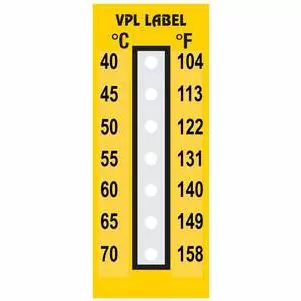 Термоиндикаторная наклейка AKS ВCW2 Single- это необратимая наклейка, которая меняет цвет по достижению определенной температуры (номинальная температура наклейки). Выпускается 5 различных номинальных температур: 60, 70, 80, 90 и 100 °C. Размеры наклейки: ширина 26 мм, высота 30 мм. Меняющая цвет зона (термоиндикатор) представляет собой круг диаметром 20 мм. Оснащена светоотражающим слоем, который помогает идентифицировать наклейку даже в условиях плохой видимости.