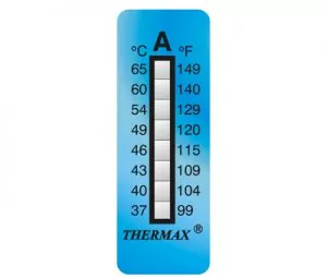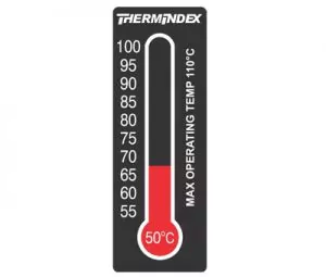 Одноразовые термоиндикаторные наклейки представляют собой самоклеящуюся основу, на которой обозначены конкретные температуры. При достижении обозначенной температуры соответствующая область меняет цвет. Эффект необратимый – при последующем снижении температуры обратного изменения цвета не происходит. Такой принцип действия позволяет определять, как максимальные, так и минимальные значения температур за любой промежуток времени. Типовыми примерами использования одноразовых термоиндикаторов являются: термопломбы (наклейки, подтверждающие отсутствие или факт перегрева), контроль температуры в рефрижераторах, контроль соблюдения холодовой цепи, определение максимальных температур частей изделий и механизмов во время эксплуатации. Наклейки сверху покрыты защитным слоем, который предотвращает их повреждение маслами, грязью, водой и т.д.